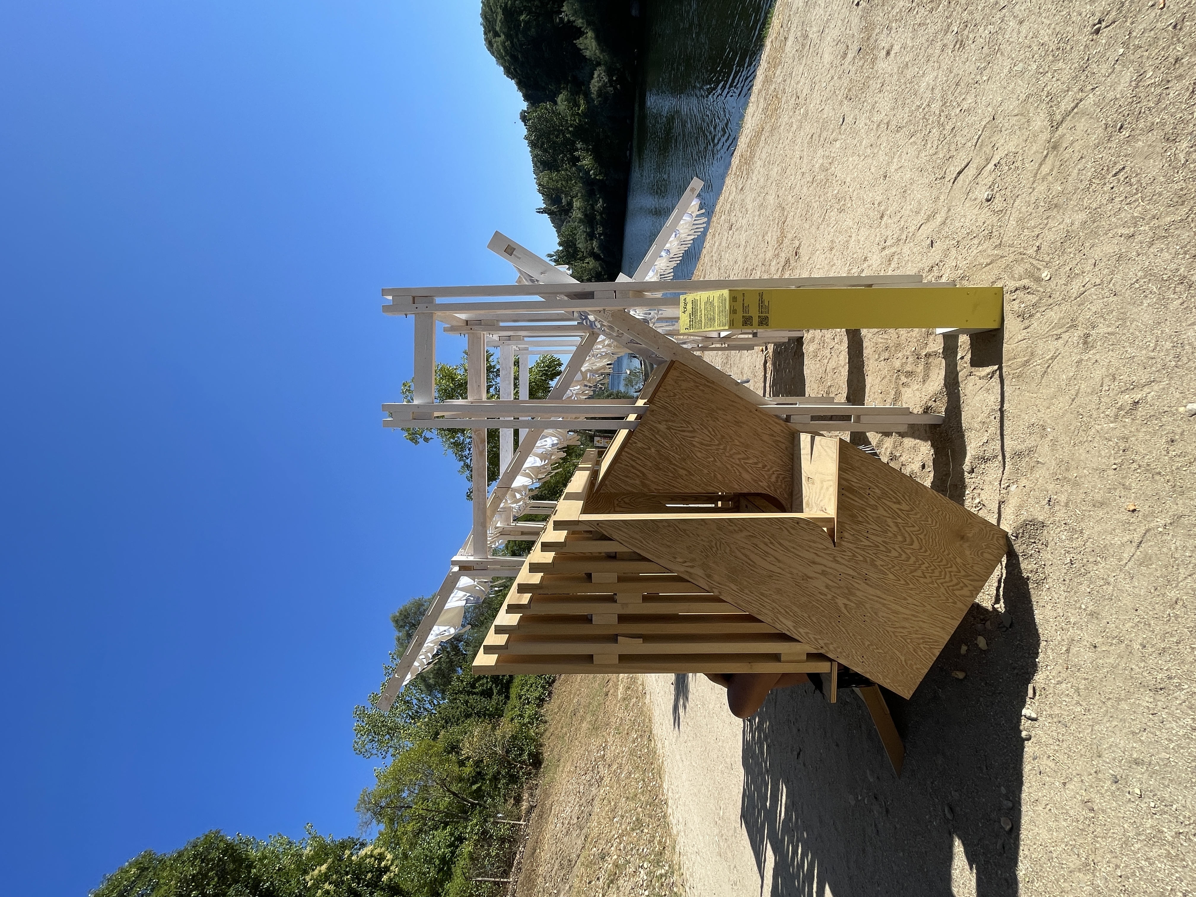 Honrando a intenção de “Lavando na Luz”, a intervenção convida o corpo a envolver-se, a ver o projeto de uma nova perspetiva e a especular sobre o rio Mondego e os seus trabalhadores a partir de uma posição de repouso.