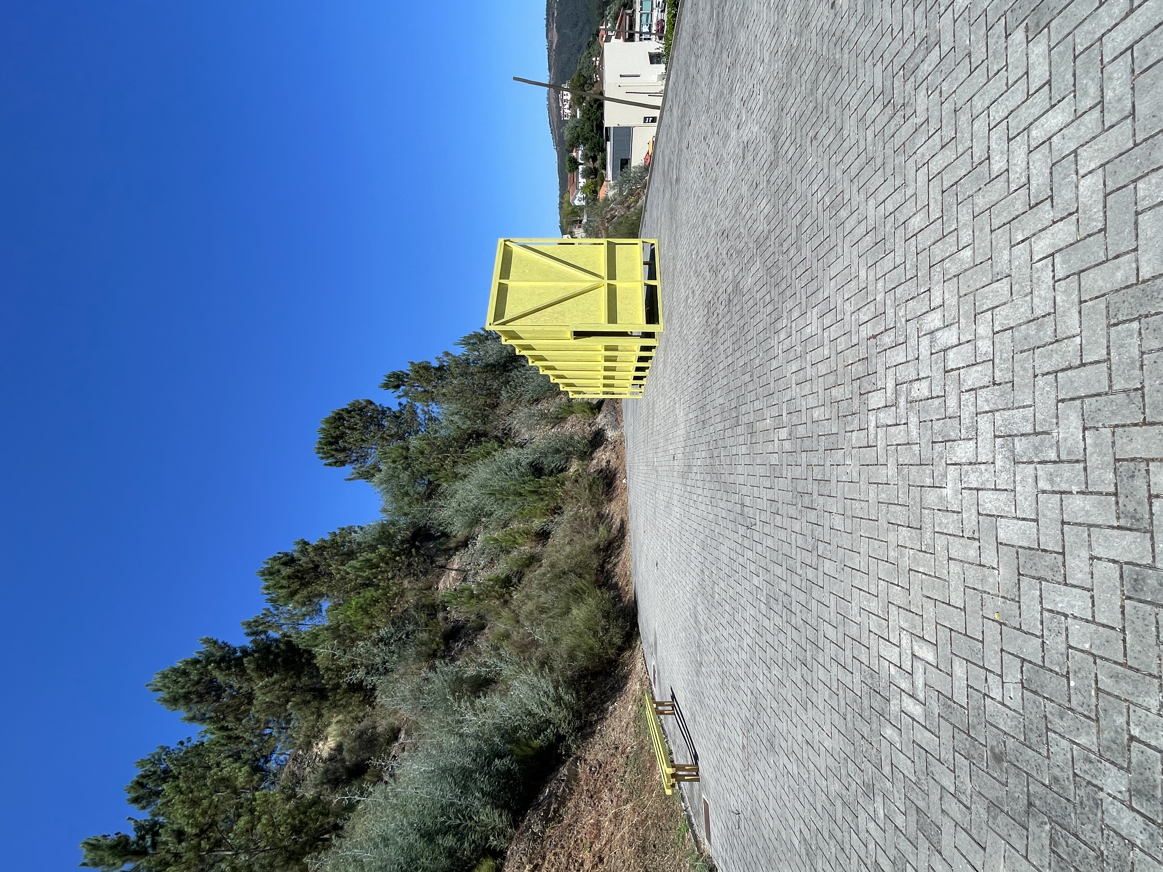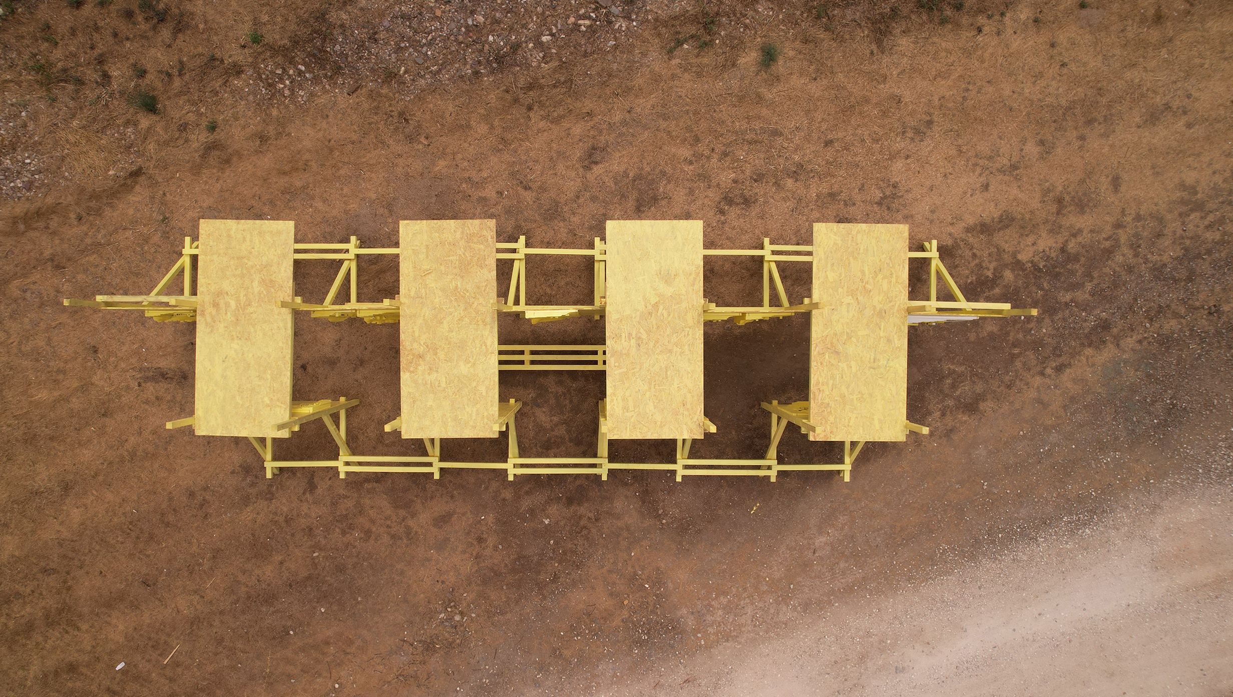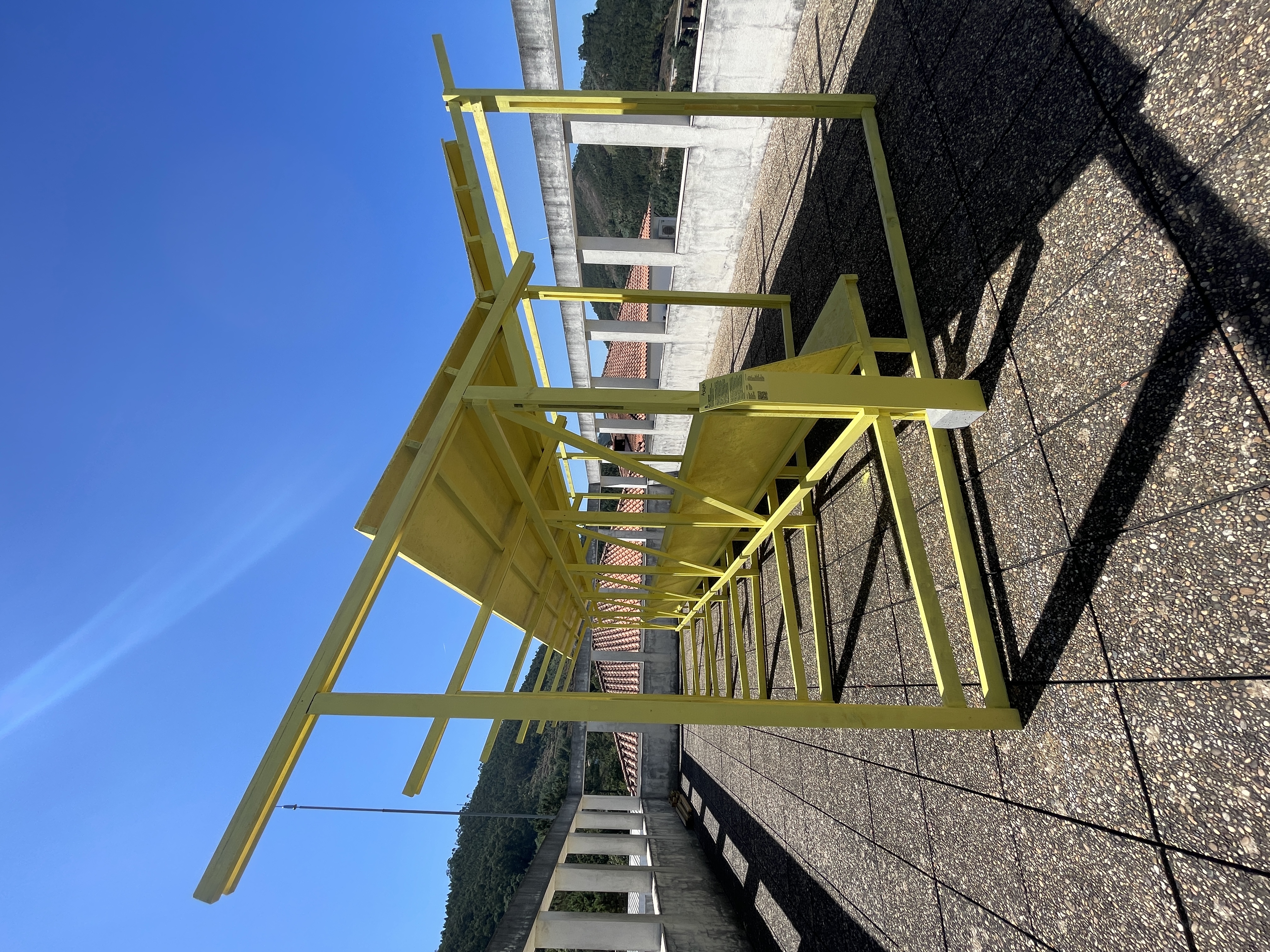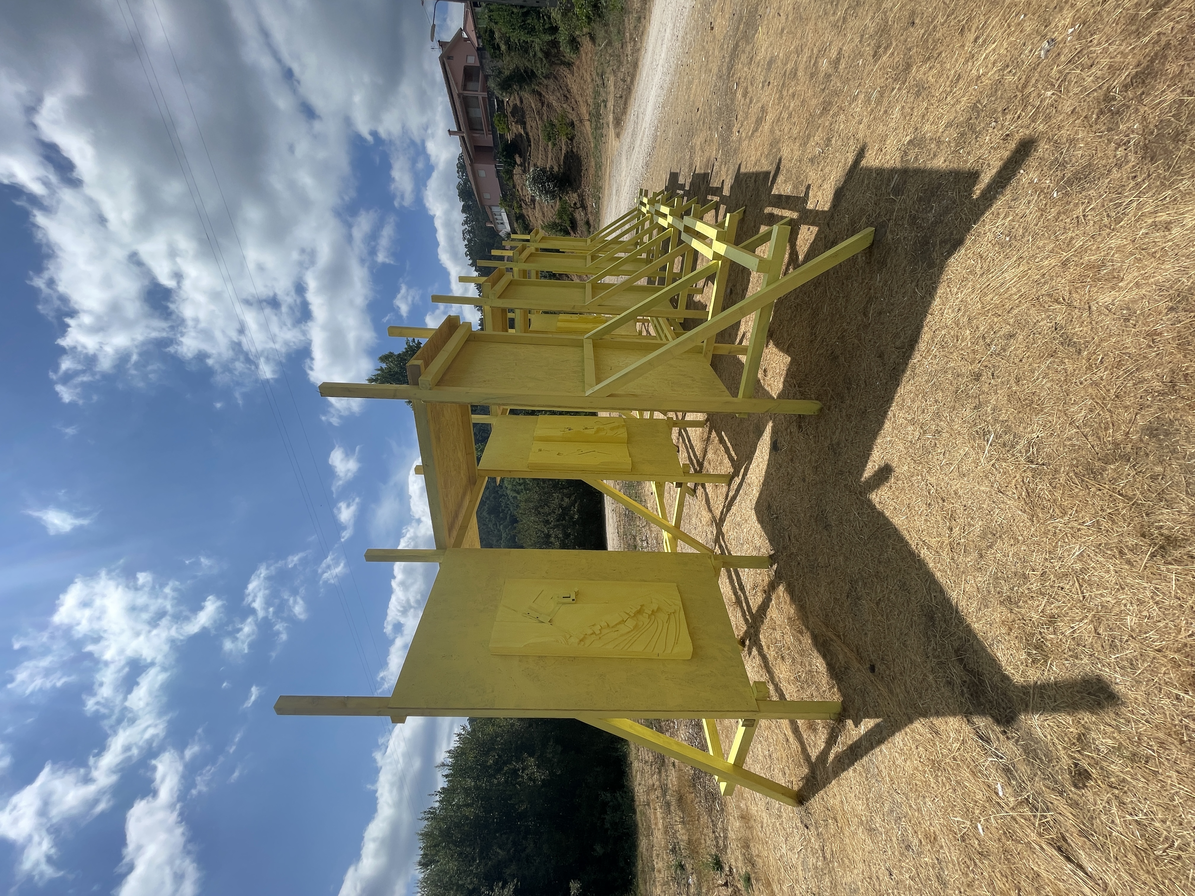 Segundo Vitorino Nemésio, que aqui comprou moinhos e uma mata, a razão de ser da fama de Penacova são os miradouros: o Penedo do Castro, a pérgola do Raul Lino, o mirante do Nicola Bigaglia, a pérgola do Jó das Bifanas. Lugares altos para admirar, as palavras são de Nemésio, “a luz e penedia”. Por estes dias de excesso de sol e luz e nesta cova entre penedos, propomos um anti-miradouro: contra a exterioridade, um lugar para a interioridade; contra a linha do horizonte, um ponto de proximidade; contra a luz, a penumbra. Esta obra foi projetada para o Parque Verde da vila de Penacova. Situado a meia encosta, numa área movimentada por feiras mensais, entre os edifícios do Centro de Saúde e dos Bombeiros Voluntários, o Parque Verde passa despercebido. É um espaço público subutilizado. Sem entrada sinalizada, carece de atenção. Na plataforma existente, a estrutura criada define-se por uma sucessão de anéis que diminuem gradualmente de tamanho, revestidos com placas de OSB, criando, assim, uma perspetiva forçada e uma sensação de compressão no interior. Como remate, um simples assento.Este espaço de contemplação é proposto para que os utilizadores possam experienciar calmamente todas as sensações proporcionadas pela peça. A mobília no exterior, reaproveitada do depósito de materiais da Câmara Municipal, é colocada em torno da estrutura, procurando organizar pequenos núcleos de conforto na plataforma inóspita. Pintado de amarelo, cor associada à alegria e criatividade, o anti-miradouro assume um outro propósito, marcando o acesso ao Parque Verde