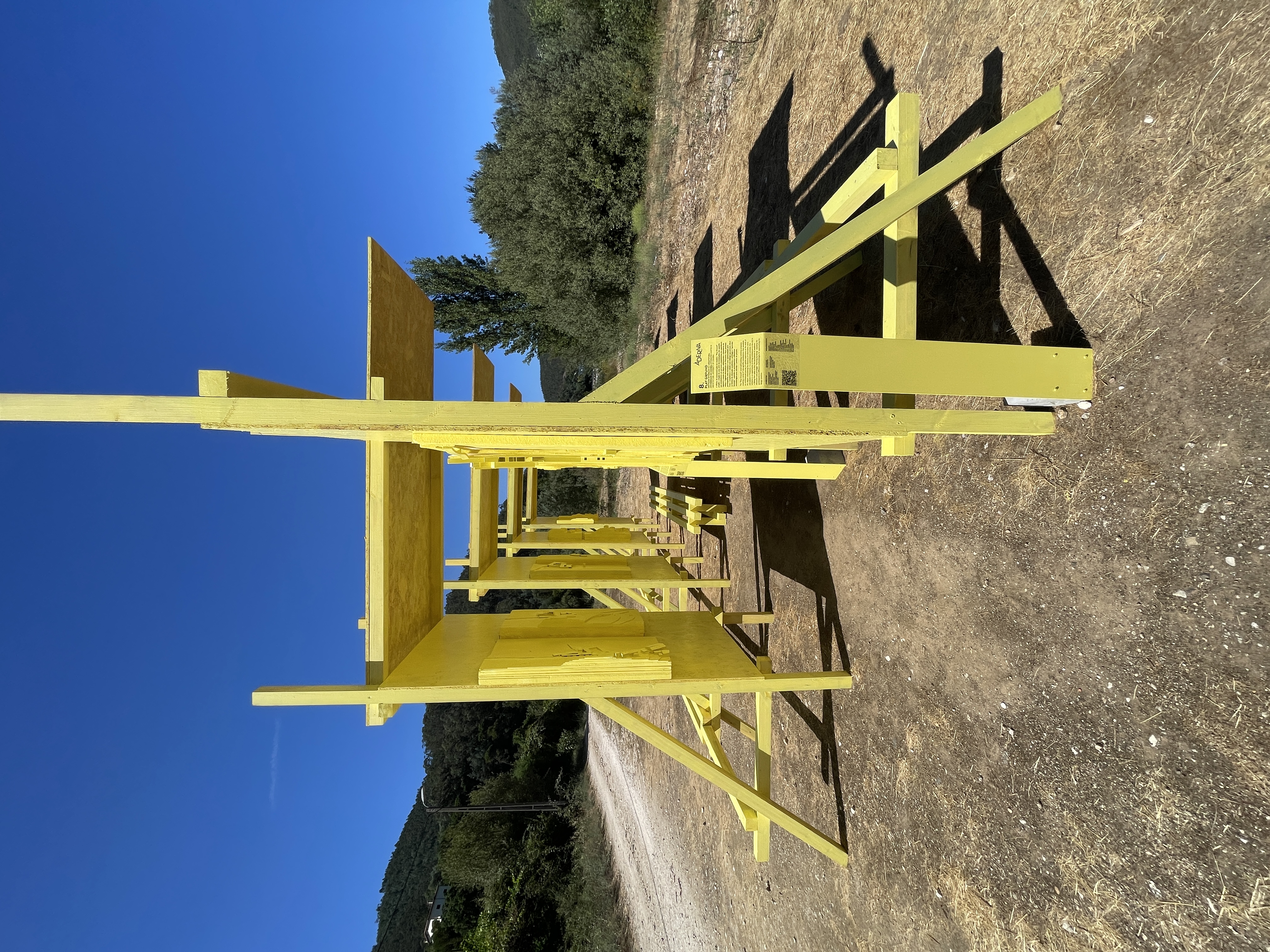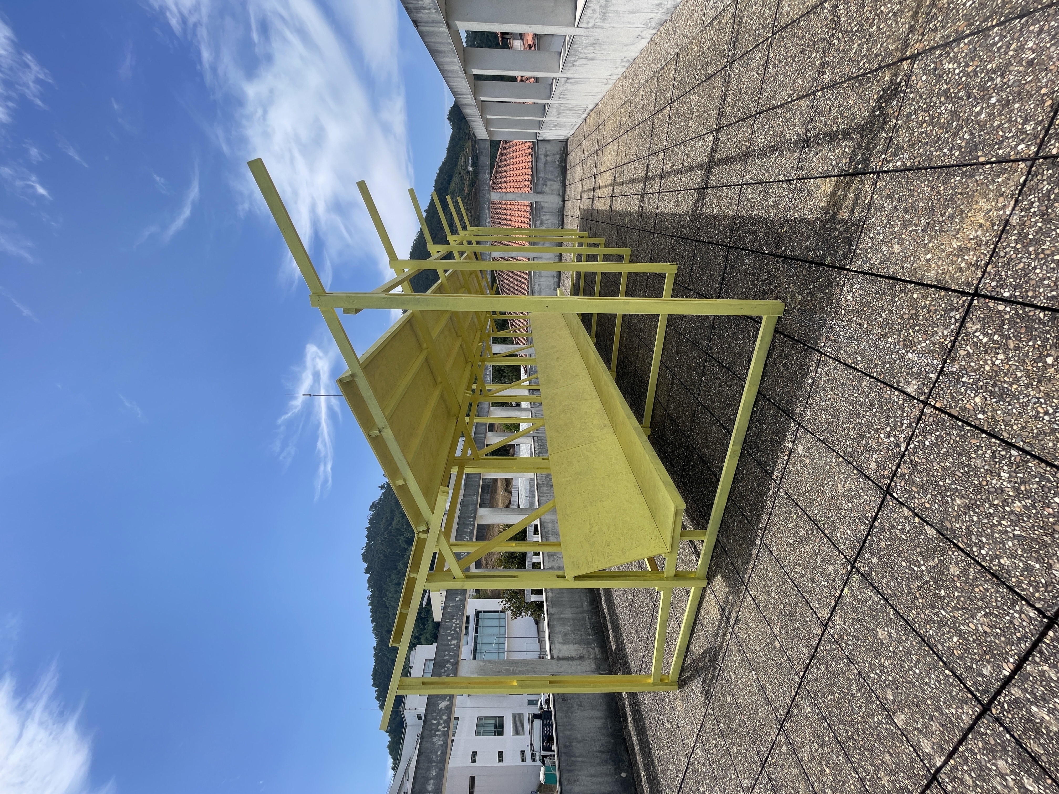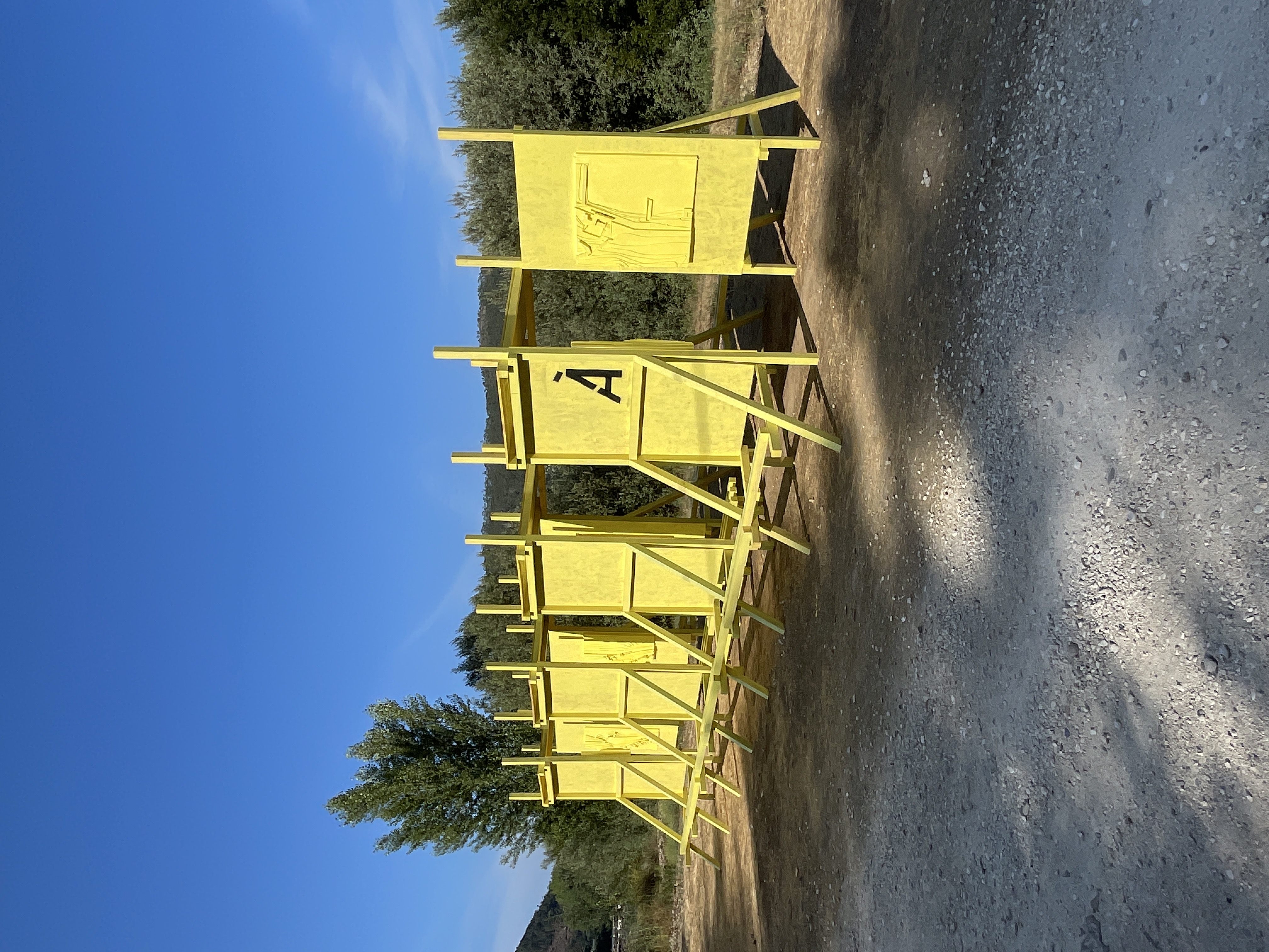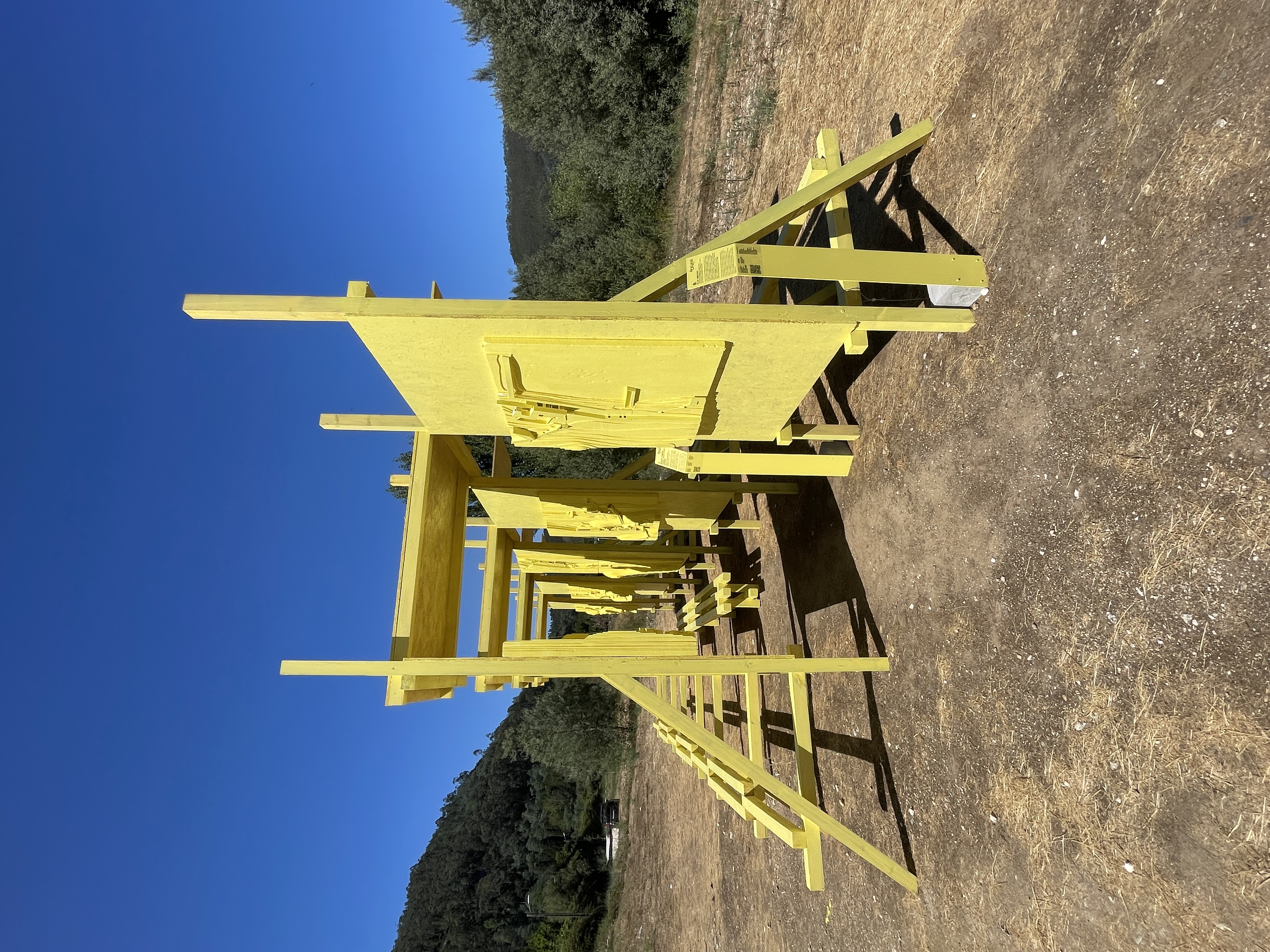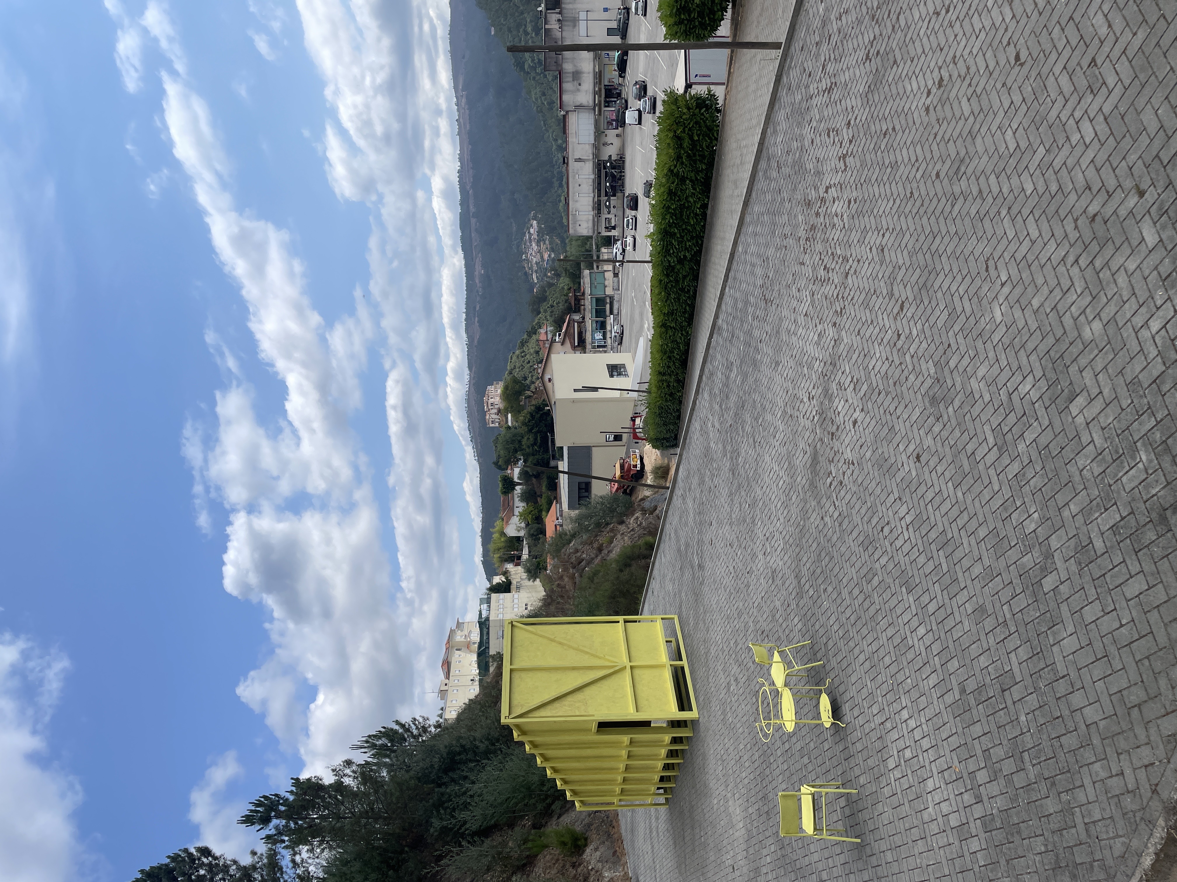 Segundo Vitorino Nemésio, que aqui comprou moinhos e uma mata, a razão de ser da fama de Penacova são os miradouros: o Penedo do Castro, a pérgola do Raul Lino, o mirante do Nicola Bigaglia, a pérgola do Jó das Bifanas. Lugares altos para admirar, as palavras são de Nemésio, “a luz e penedia”. Por estes dias de excesso de sol e luz e nesta cova entre penedos, propomos um anti-miradouro: contra a exterioridade, um lugar para a interioridade; contra a linha do horizonte, um ponto de proximidade; contra a luz, a penumbra. Esta obra foi projetada para o Parque Verde da vila de Penacova. Situado a meia encosta, numa área movimentada por feiras mensais, entre os edifícios do Centro de Saúde e dos Bombeiros Voluntários, o Parque Verde passa despercebido. É um espaço público subutilizado. Sem entrada sinalizada, carece de atenção. Na plataforma existente, a estrutura criada define-se por uma sucessão de anéis que diminuem gradualmente de tamanho, revestidos com placas de OSB, criando, assim, uma perspetiva forçada e uma sensação de compressão no interior. Como remate, um simples assento.Este espaço de contemplação é proposto para que os utilizadores possam experienciar calmamente todas as sensações proporcionadas pela peça. A mobília no exterior, reaproveitada do depósito de materiais da Câmara Municipal, é colocada em torno da estrutura, procurando organizar pequenos núcleos de conforto na plataforma inóspita. Pintado de amarelo, cor associada à alegria e criatividade, o anti-miradouro assume um outro propósito, marcando o acesso ao Parque Verde