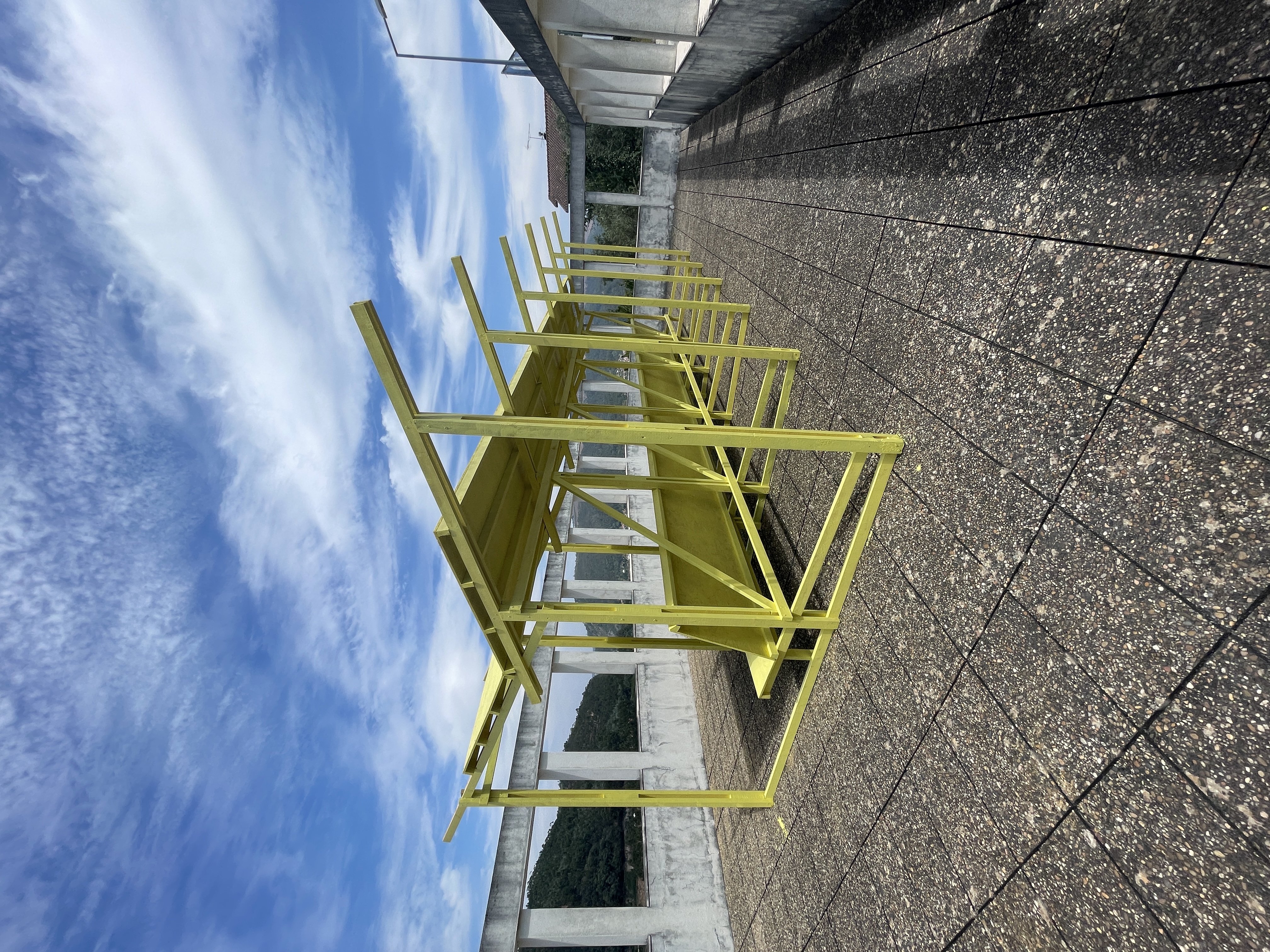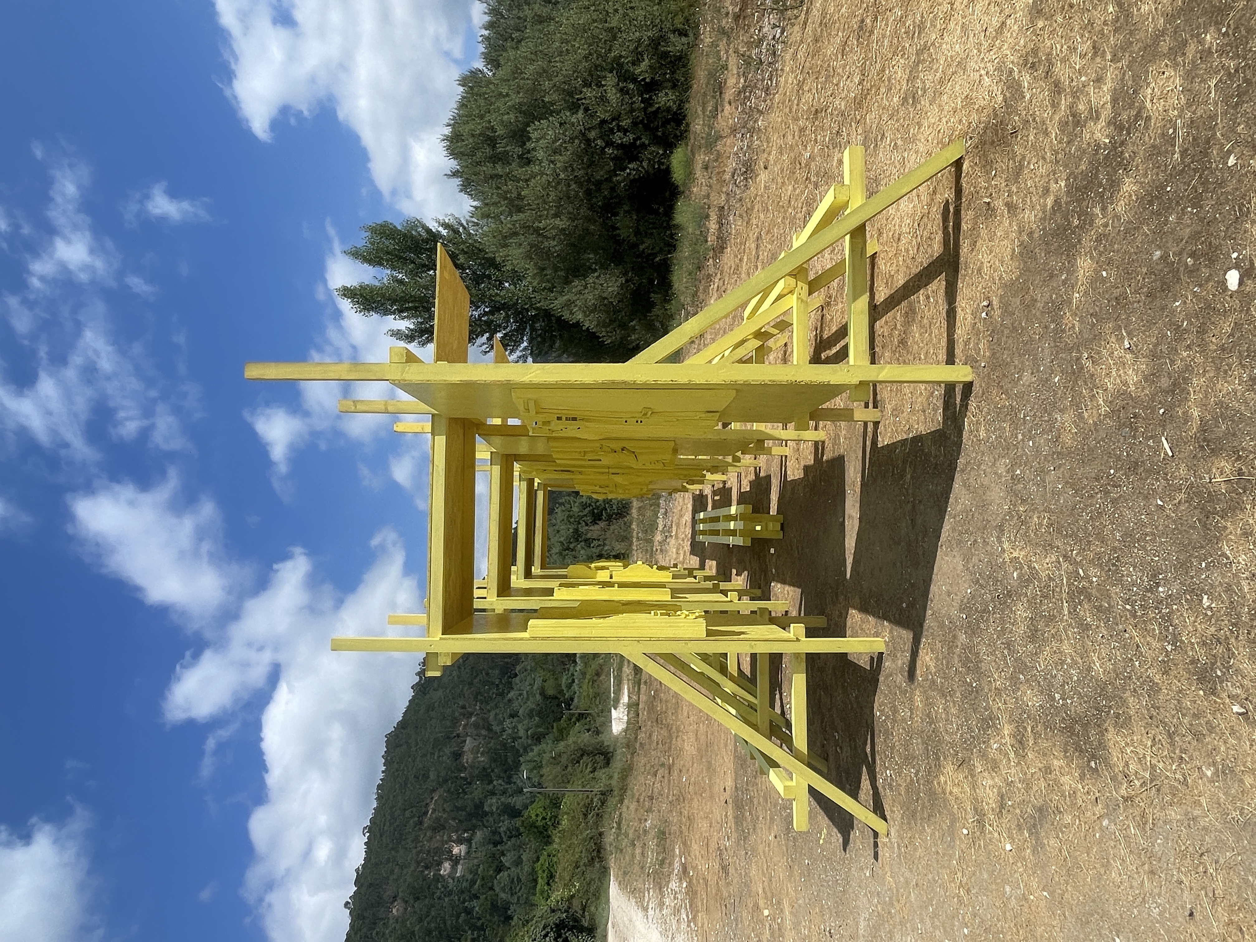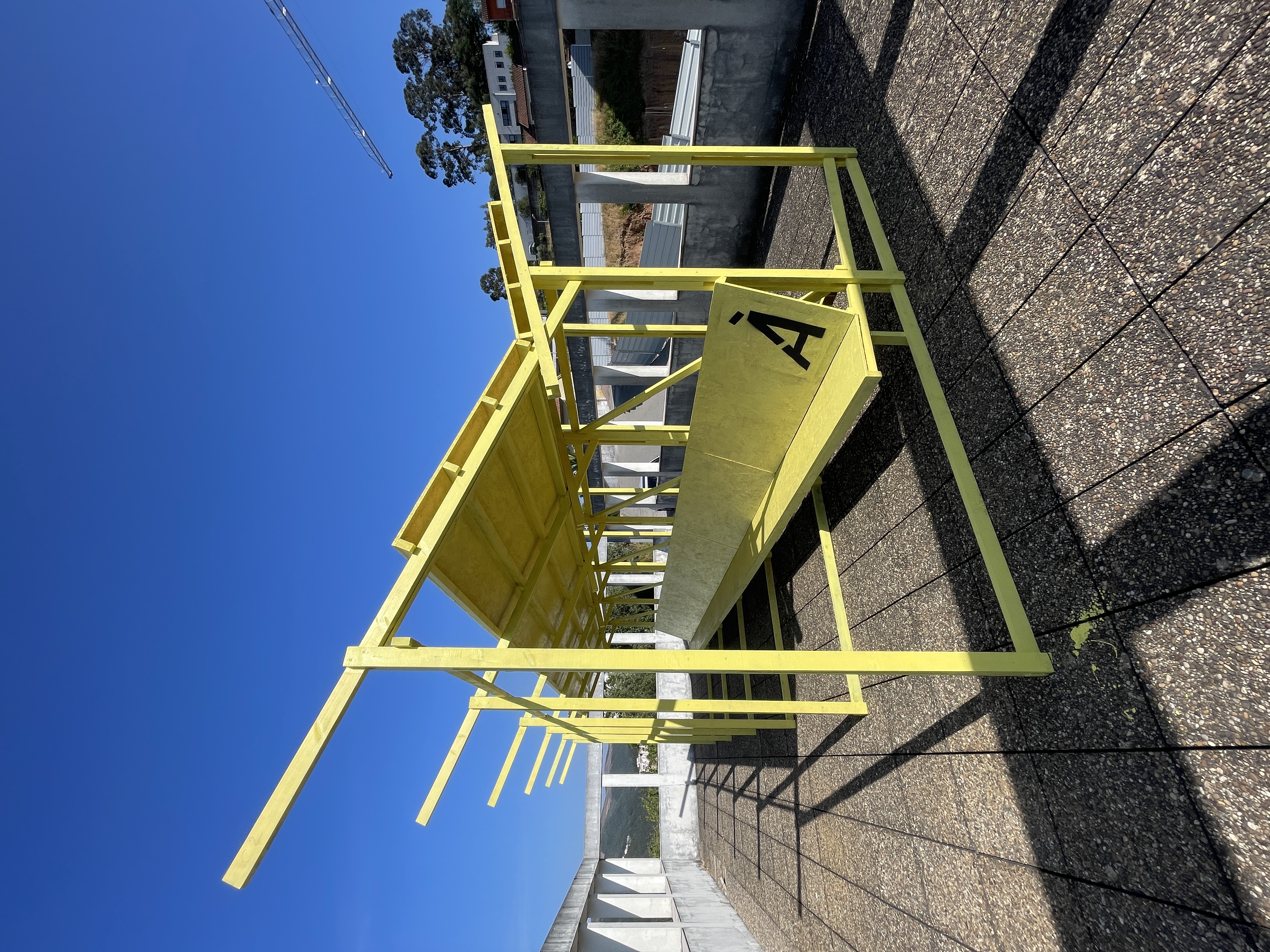 A estrutura desenvolvida, construída em madeira, assenta sobre um espaço preexistente que apresenta uma métrica rigorosa e bem delineada. Esta base impôs uma lógica construtiva clara, que não foi encarada como uma limitação, mas, antes, como uma oportunidade para criar um diálogo entre o novo e o existente. A peça nasce, assim, do respeito por este ritmo e dessa modulação arquitetónica, que se tornam parte integrante do novo gesto construtivo. Ainda assim, a intervenção distingue-se pela liberdade formal com que se desdobra, permitindo a criação de um espaço simultaneamente contido e fluído, com vocação múltipla e identidade própria. Essa liberdade programática garante à estrutura uma capacidade de adaptação que a torna viva e responsiva às diferentes formas de apropriação ao longo do tempo.